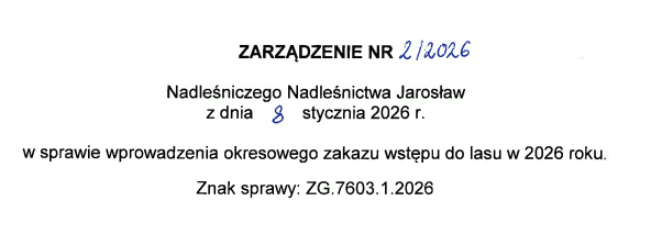 Zarządzenie nr 2 2026 w sprawie wprowadzenia okresowego zakazu wstępu do lasu w 2026 roku (PDF, 870k)